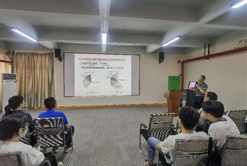 随后,实验室主任梁延鹏为新生讲解了,实验室危险化学品管理、废弃物处置、危化品管理、防火防盗、实验室准入机制等及工作间的消防安全和用电规范等。