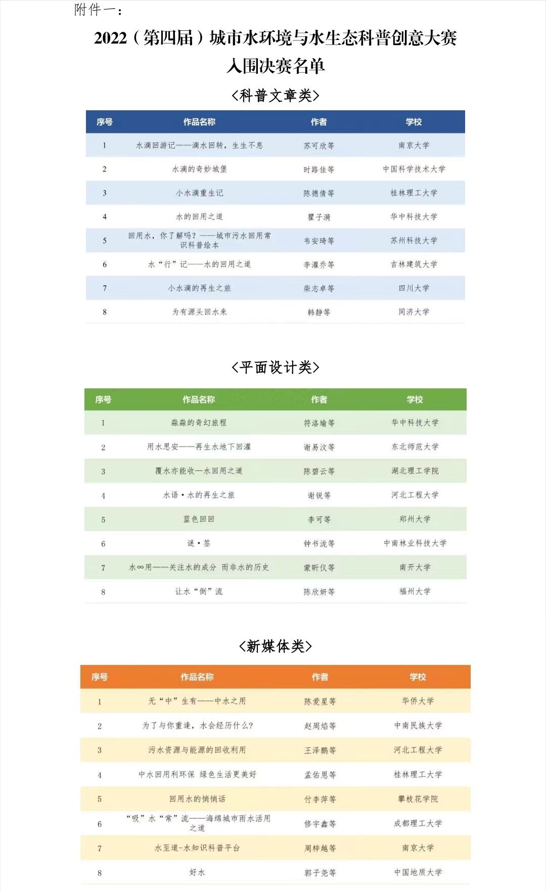 入围决赛作品名单