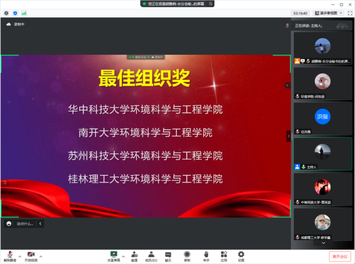 10月22日,2022(第四届)城市水环境与水生态科普创意大赛总决赛在武汉举办,由于疫情原因改为线上进行答辩。2022(第四届)城市水环境与水生态科普创意大赛由中国城市科学研究会水环境与水生态分会主办、湖北省科学技术协会、华中科技大学联合主办。大赛设置三个类别赛事,共计收到来自南开大学、南京大学、华中科技大学、东北师范大学等60余所高校的500余个团体与个人的参赛作品,经初评、复评专家组评审后,每一类别前8名(共24份)作品进入到决赛阶段。寸止挑战