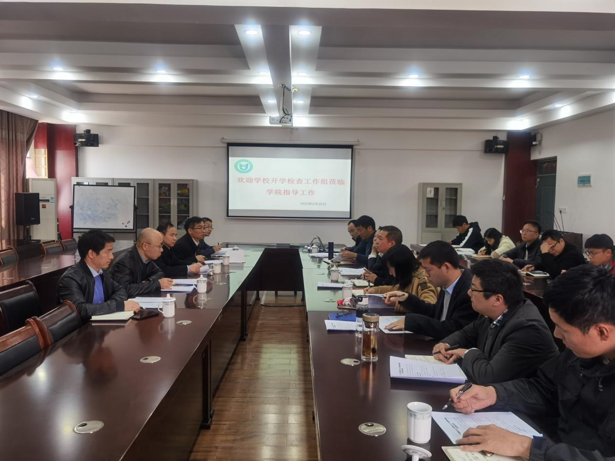 院长曾鸿鹄结合学院实际向检查组汇报新学期重点工作计划,审核评估准备工作情况,以及党的建设与全面从严治党、“强院兴校”和综合改革、学科建设、博士点申报等方面情况进行了汇报。