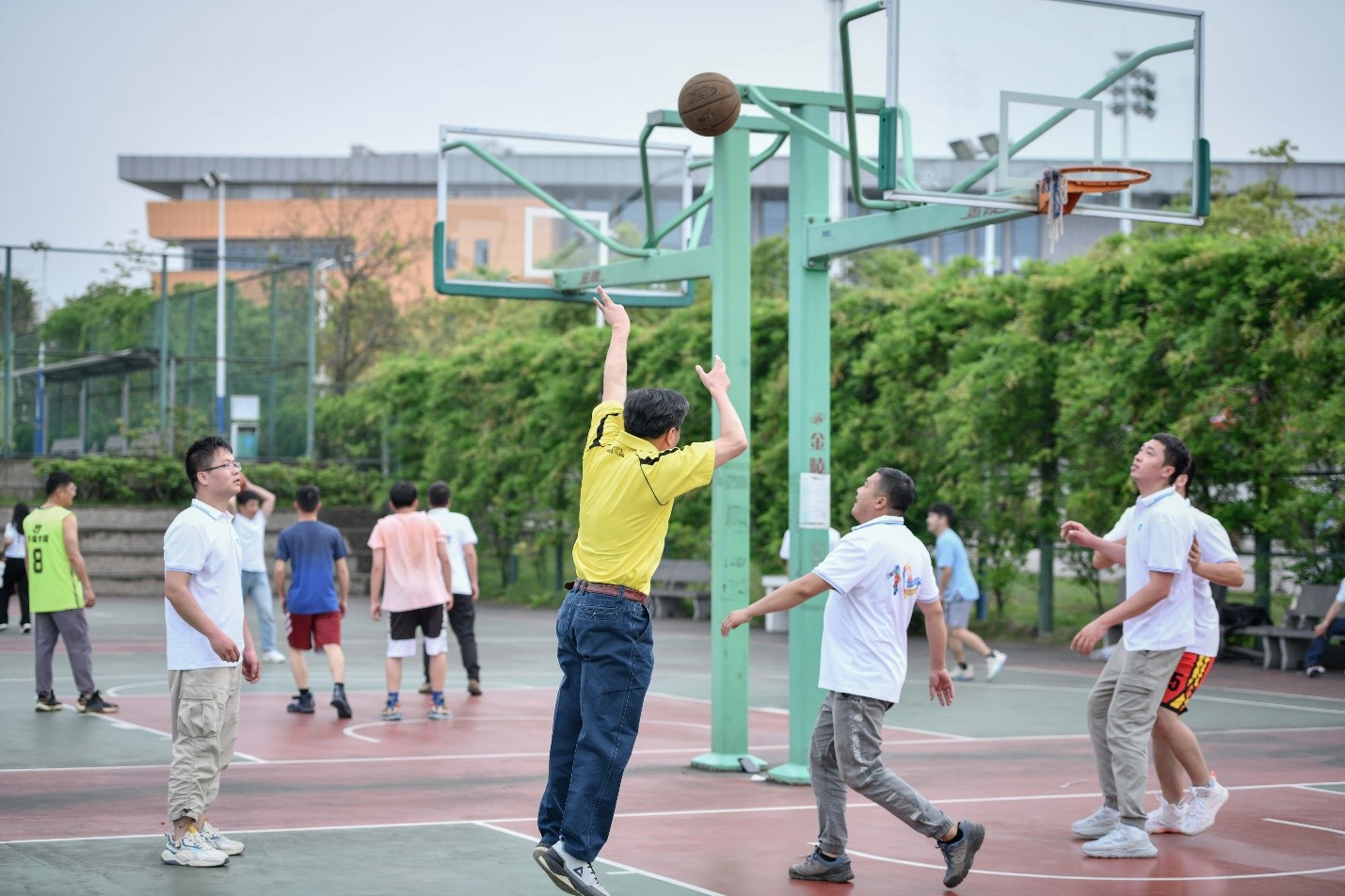 篮球场师生交流