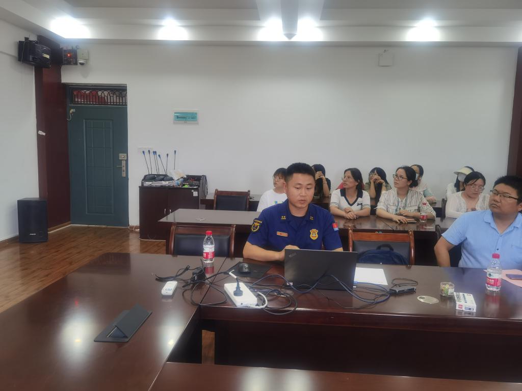 本次安全演练包括消防安全知识培训、火灾逃生演练、灭火器使用培训三部分。全员师生代表首先在12407会议室进行消防安全知识培训,雁山消防救援大队指导员陶宁对消防安全知识进行了深入浅出的讲解。
