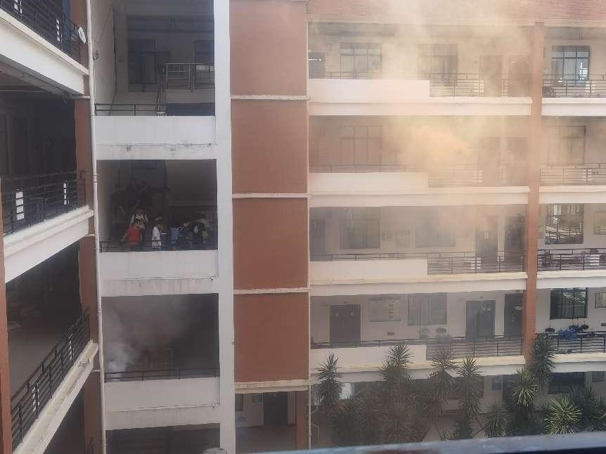 以模拟学院办公大楼突发火灾为背景,在全院范围内开展消防应急疏散演练活动。