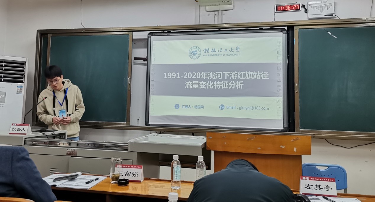 教师徐保利副教授作《会仙湿地生态需水量及补水研究》的报告、研究生杨国梁作《1991-2020年洮河下游红旗站径流量变化特征分析》的报告,向与会人员介绍和分享在湿地生态水文、流域水资源演变等方面的研究,并和与会的水资源领域专家交流。