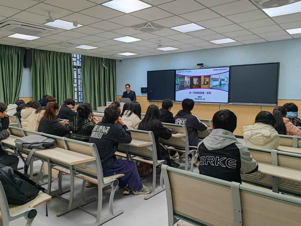 刘锐平教授以“水●可持续发展●未来”为主题,详细介绍了水的循环与水资源开发利用、饮用水与健康及其风险和控制、污水生物处理技术及工艺、非常规水源开发与利用、创新与社会发展等内容,深入浅出的向同学们说明了“水-人类-未来”之间的关系。刘锐平教授结合自己的科研经历,对饮用水中砷和氟的去除做了深层次的讲解,重点对非均相氧化-吸附除砷工艺、铝氟配位络合-吸附除氟新技术等领域进行了全面的介绍,另外,提出了污水处理过程中将有价值的物质资源化的治理理念,使水处理向着更安全、更经济的方向发展。刘锐平教授在在讲授传统知识体系的同时介绍了一些本学科专业的最新进展及发展趋势,并鼓励学生们积极投身于科学研究,为国家以及人类美好的未来努力奋斗。