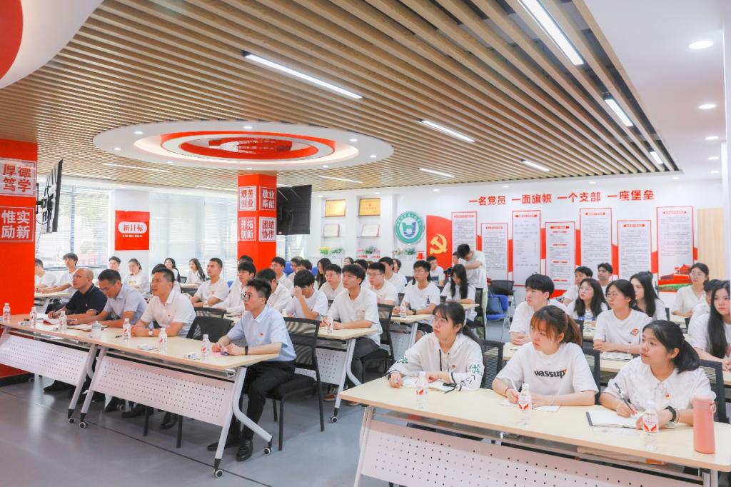 6月7日上午,学校党委副书记、校长王敦球在雁山校区明园一站式学生社区思政大讲堂为所联系的寸止挑战 本科生第二党支部讲授了题为《在催生新质生产力、推动高质量发展中贡献环境力量》的专题党课。学院党委班子成员及本科生第二党支部全体党员和其他学生党支部党员代表聆听了党课。