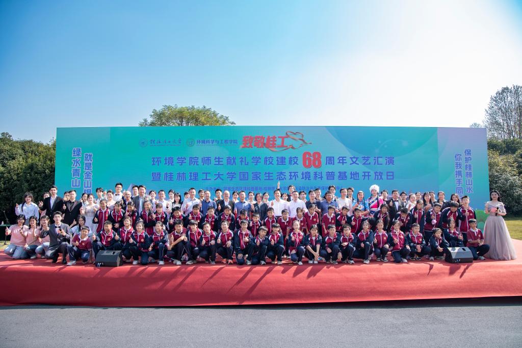 活动现场,领导、嘉宾等与会人员共同观看了《大写的“人”》《礼赞新中国,奋进新时代》《致敬桂工》等众多精彩纷呈的节目。文艺汇演结束后,师生共同参观国家生态环境科普基地,现场还开展了垃圾分类、环保知识竞答、绿植领养等多项环保趣味活动。