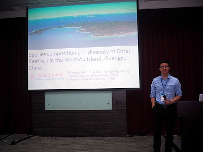 博士生邹琦参加了本次会议并做了题为“Coral Reef fishes community diversity and its relationship with environmental factors in Weizhou Island, Guangxi, China”的学术报告。