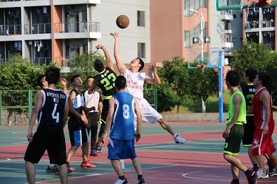教师代表队虽然年龄较长,但体力一点不比学生差,全场积极活跃,更是多次投球得分,比分一直领先。全场结束,比分100:79,学生队惜败。球场上,两支队伍热情洋溢,欢笑声不断,洒以汗水,浇灌师生情谊之花。
