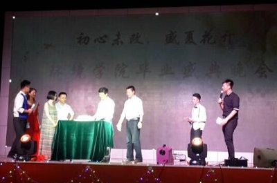于雁山校区体育馆为大四毕业生举办了“初心未改,盛夏花开”2016届毕业晚会。本次晚会邀请了学校校长解庆林、寸止挑战