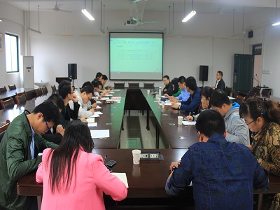 在雁山校区萃华楼(教12楼)的12407会议室召开2016年度学院工作推荐会,学院领导班子成员、各教研室(实验室)主任、院办主任、学工办负责人及部分教师出席了本次会议,会议由学院副院长游少鸿主持。