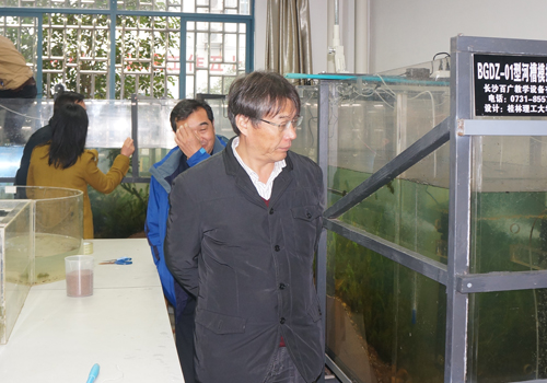 学校党委书记、国家级实验教学示范中心主任、国家级虚拟仿真实验教学中心主任张学洪教授、学院副院长游少鸿副教授、学院副院长李艳红研究员以及环境工程中心实验室部分教师在雁山校区清和楼、萃华楼热情接待了来访客人一行。现场参观中,宾主双方相互就二级学院的建设发展、学科建设和管理方法、国家级、省部级质量工程项目和本科教学改革工程项目的申报、建设以及结题经验进行了现场详尽交流。