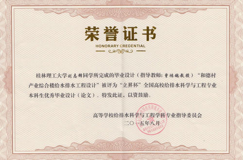 此次大会还分别评选出“多相杯”教改优秀论文10篇、“立昇杯”本科生优秀毕业设计(论文)10篇和“中国给水排水杯”本科生优秀科技创新项目10项,并在大会闭幕式上举行了隆重的颁奖仪式。我校选送的2015届毕业生刘志锋同学完成的毕业设计“和德村产业综合楼给水排水工程设计”获2015年“立昇杯”全国高校给水排水工程专业本科生优秀毕业设计(论文)。此次获奖,进一步彰显了寸止挑战