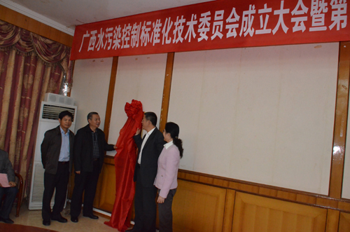 领导共同为广西水污染控制标准化技术委员会揭牌,并向委员颁发聘任证书。