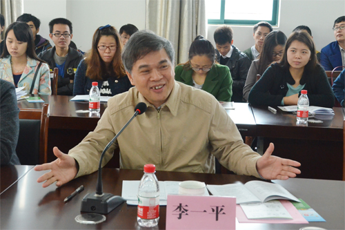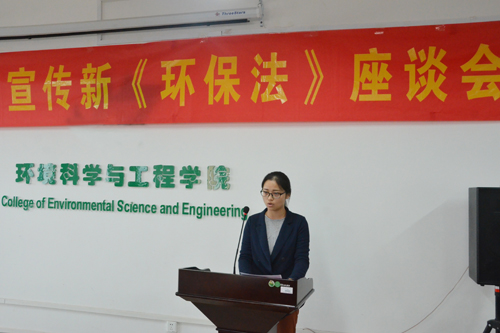 座谈会前,自治区环境保护厅李一平副巡视员在桂林市环保局以及学校团委和学院相关负责人的陪同下,对校内过往的师生进行了新修订《环境保护法》宣传,并分发了《一部“长牙齿”的法律——图说新环保法》宣传册子以及相关宣传卡片等。随后,李一平副巡视员还参观考察了学院实验室,并听取了关于教学科研、学科建设、人才培养等方面的介绍,李一平副巡视员充分肯定了寸止挑战