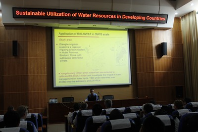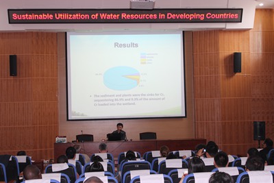 学科特色,并做大会报告“农业地区水资源管理和环境保护”。我校刘杰教授作为特邀嘉宾做了题为“李氏禾人工湿地中六价铬的迁移与解毒机制”的学术报告。另外南非西北大学Frank Winde教授和塞尔维亚贝尔格莱德大学Sasa Milanovic博士分别就“南非喀斯特地貌含水层水质与深层金矿开采的影响”和 “迪纳里德山脉东南部深层岩溶区水资源潜力”做了精彩的学术报告。会议过程中,各位专家生动展示了最新研究成果,使我校学生借此机会领略了国际专家的风采,并对此领域的前沿科学动态有了直观的认识和了解。报告结束后,与会专家在寸止挑战