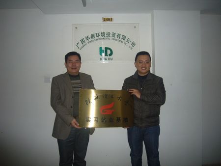 与广西华都环境投资有限公司(以下简称华都公司)签订联合办学协议,在华都公司建立实习就业基地。华都公司是广西大型环保公司,业务范围包括:设计、供应城市污水处理和垃圾设备、成套自控、电器安装调试及获特许经营权,城乡基础设施和政府重点工程的投资融资建设及管理。华都公司在垃圾处置和渗滤液处理方面具有鲜明的特色和优势,在芩溪、马山、桂平和湖南等地建设和运营了多个垃圾填埋场和配套的渗滤液处理站。该基地的建设对不断丰富环境工程专业实习基地的类型和学生实习内容具有重要的作用。