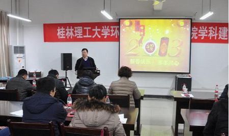 曾鸿鹄院长结合年初制定的2012年学院工作目标、完成情况及年度考核情况做了全面回顾总结,结合后博士点建设时期由教学型学院向研究型学院转型的目标,部署了2013年的工作,要求将具体工作任务落实到人。曾院长对“生态·和谐”进行了诠释,以此激励全院教职员工以“不拆台、不推诿、不抱怨”的态度积极开展各项工作。