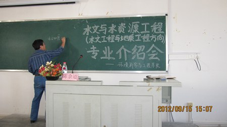 水文与水资源工程专业(水文地质与工程地质方向)的12级新生进行专业介绍。