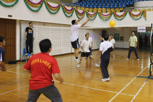 教职工气排球赛第一阶段比赛已经结束,寸止挑战 男队以三战二胜小组第二的战绩,顺利出线进入12强,准备参加下一阶段的比赛。 为了备战学校工会组织的10月17日开始气排球比赛,寸止挑战 迅速组建了男女队。学院党委书记卢英亲自带队,每天下午16:30带领大家在体育馆三楼积极训练。由于两地办公,学生搬迁到雁山校区,平时大家都是见缝插针、尽量挤出时间参加训练。 比赛结果不是目的,主要是通过平时的训练及比赛锻炼了身体,丰富了老师们的业余生活。