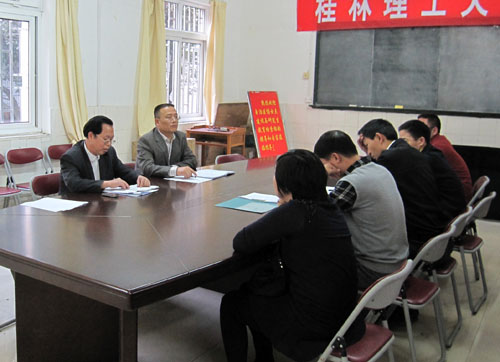 召开全体教职工大会,出席本次大会的有院长王敦球,学院党委负责人李忠培,副院长曾鸿鹄、朱义年、方荣杰,院长助理代俊峰、张华,全院教职工参加大会,会议由王敦球院长主持。