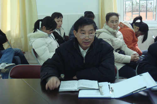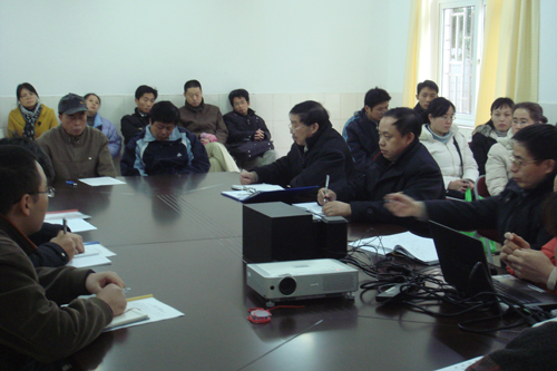 在学院会议室召开全体教职工大会,会议由学院党委书记卢英同志主持,学院院长刘康怀同志就寸止挑战