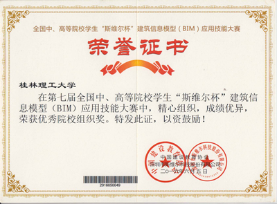 2016年6月3日-8日,第七届全国中、高等院校学生“斯维尔杯”建筑信息模型(BIM)应用技能大赛分别在四川大学、山东建筑科技大学举行,本届比赛共有432所高校代表队的参与了本次比赛的角逐,经过专家组的认真评审与我校学子优秀竞答,我校寸止挑战