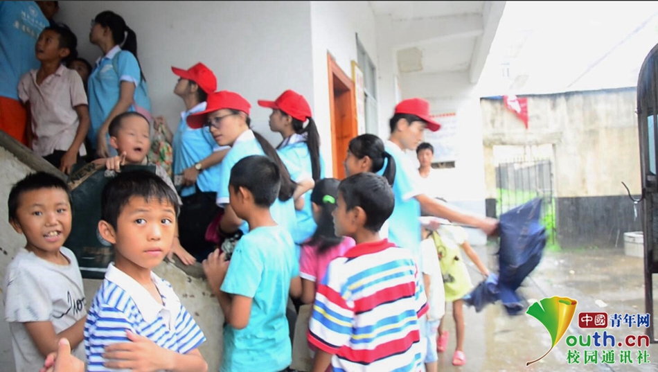 04 在第二天的支教活动中,天公不作美,原本晴朗的天空突然电闪雷鸣,顷刻间大雨如注。前往村里的途中,志愿者们心里多少有几分犹豫。但这份犹豫很快便被孩子们教室前等待的身影打散了。看到队员们到来,他们欢呼雀跃,甚至有几个小朋友冒雨冲出来迎接支教队员们,与队员们一同淋雨跑进教室。志愿者们虽被大雨打湿了衣服,但心里却又感到那么的暖。大雨阻挡不了支教队员们的热情,削弱不了孩子们对知识的渴求,也见证了支教队员们与孩子们深厚的友谊。