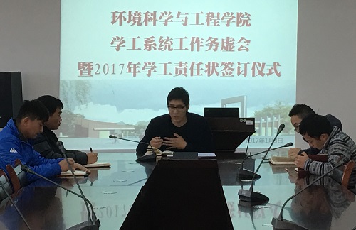学生工作办公室在12407会议室举行2017年学工系统工作务虚会暨学工责任状签订仪式。学院党委副书记郝文佳,团委书记唐红兵及全体辅导员参加会议并签订了学生工作目标责任状。