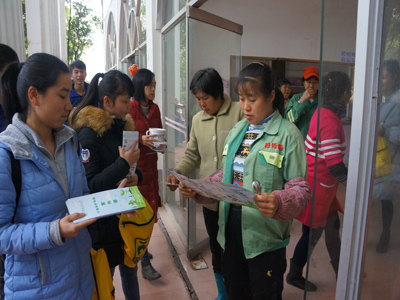 环保志愿者们精心策划了面向普通民众的环保宣传手册。宣传期间,志愿者们走进村组、社区、商店以及菜市场等,积极向桂林市民宣传有关环境保护的科普知识,倡导及呼吁当地居民行动起来,从我做起,从身边的小事做起,爱护环境,共创一片蓝天。