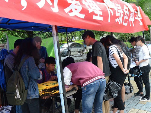 转眼间,活动准备的1500多粒种子以及上百盆植株全部被领养种植,领到绿植的同学们积极地研究并询问其品种和栽培方法,环保志愿者们也在现场耐心地解答了同学们提出的各种关于种植的问题。同学们十分好奇绿植长大后的样子,但是志愿者们故意卖关子,给来领取的同学们带来了满满的悬念。现场有志愿者告诉我们:“一颗小小的种子,传递的不仅仅是绿色、环保的理念;更是梦想是希望,只要努力,梦想就一定会发芽!”