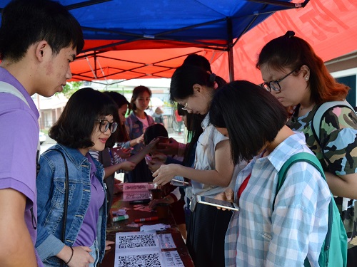特色环保袋。这一参与方式新鲜时尚又健康环保,吸引师生们纷纷拿出手机、扫描二维码加入绿植领养活动,为打造“绿色校园”贡献自己的力量。