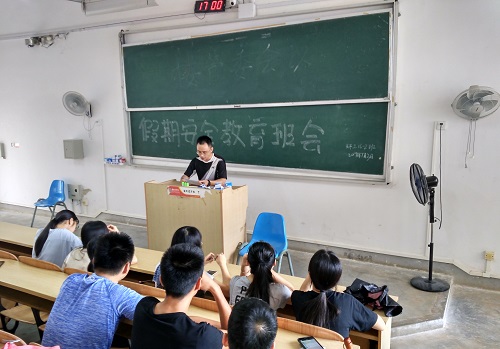 会议主要内容包括:一、端正考风、严肃考纪,做好期末文明考试、诚信考试;二、严格落实暑假离校登记制度,按时返校;三、假期保持手机通畅,保持与老师、同学、家人的联系;四、假期注意安全,包括离校安全、路途安全、游泳安全、留校安全、外出打工安全、社会实践安全、饮食安全等。