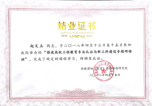 给排水科学与工程专业评估认证工作顺利进行,4月14日-4月15日给水排水工程教研室赵文玉老师赴西安参加由高教国培(北京)教育科技研究院举办的“推进高校工程教育专业认证与新工科建设专题研修班”。