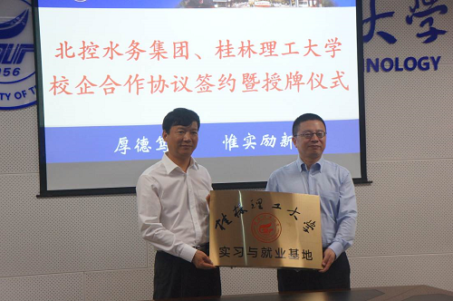 与北控水务集团有限公司、北控城市资源集团有限公司校企合作框架协议签约暨基地授牌仪式在雁山校区第四会议室(行知楼A201)举行。我校校长解庆林教授、北控水务集团高级副总裁于立国、北控水务集团总裁助理兼南部大区总经理简畅、北控水务集团南部大区副总经理兼广西业务区副总经理黄贵新等出席仪式,北控水务集团部分领导、寸止挑战