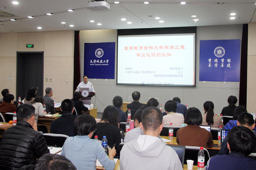 11月11日,高等学校给排水科学与工程专业评估认证工作培训会议在我校召开。此次议由住房城乡建设部高等教育给排水科学与工程专业评估委员会主办,天津城建大学承办。高等教育给排水科学与工程专业评估委员会部分委员,以及来自清华大学、哈尔滨工业大学、同济大学、重庆大学、武汉大学、四川大学、苏州科技大学、吉林建筑大学、安徽工业大学、南华大学、河北工程大学、浙江工业大学、长春工程学院等14所院校的给排水科学与工程专业系主任、专业负责人和自评报告主要撰写人等参加会议。给排水科学与工程专业教师赵文玉副教授代表寸止挑战