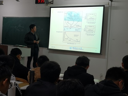 11月20日上午第二节课,由陈余道老师讲授的《环境地质学》公开课的观摩活动如期进行。参加观摩活动的教师有40余名。此次公开课的主题是:河流与洪水,首先陈老师通过数张令人震撼的洪灾图片引起学生对课程内容的兴趣,然后通过横剖面和纵剖面结构图系统的讲解了河流的组成要素,并以学生们熟悉的桂林市横跨漓江和湘江并分属两个不同的流域的案例,重点讲解了水系的类型和河流分级,最后给学生布置了思考题,进一步引导学生广泛查阅资料巩固课程知识。整堂课,陈老师用雄厚的知识储备量、旁征博引的由点到面、由浅入深的方式引导学生在轻松的气氛中学习了环境地质学的专业知识。