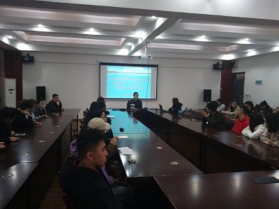 2019年春季学期清明节、“三月三”节前研究生安全教育大会。学院党委副书记郝文佳、研究生辅导员夏晴参加了此次会议,学院全体在校研究生参加了此次会议。