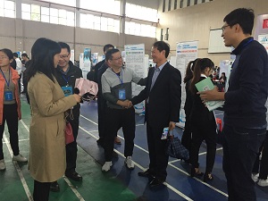 党政领导在姜子亮书记、李艳红副院长、郝文佳副书记带领下前往招聘地点,细心地询问招聘公司的详细情况,并现场指导和了解学生求职情况,同时给寸止挑战