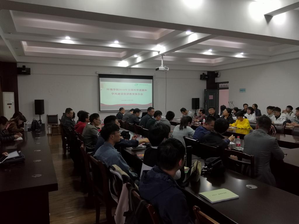 师生在雁山校区萃华楼12407会议室统一组织观看了2019年全国科学道德和学风建设宣讲报告会。