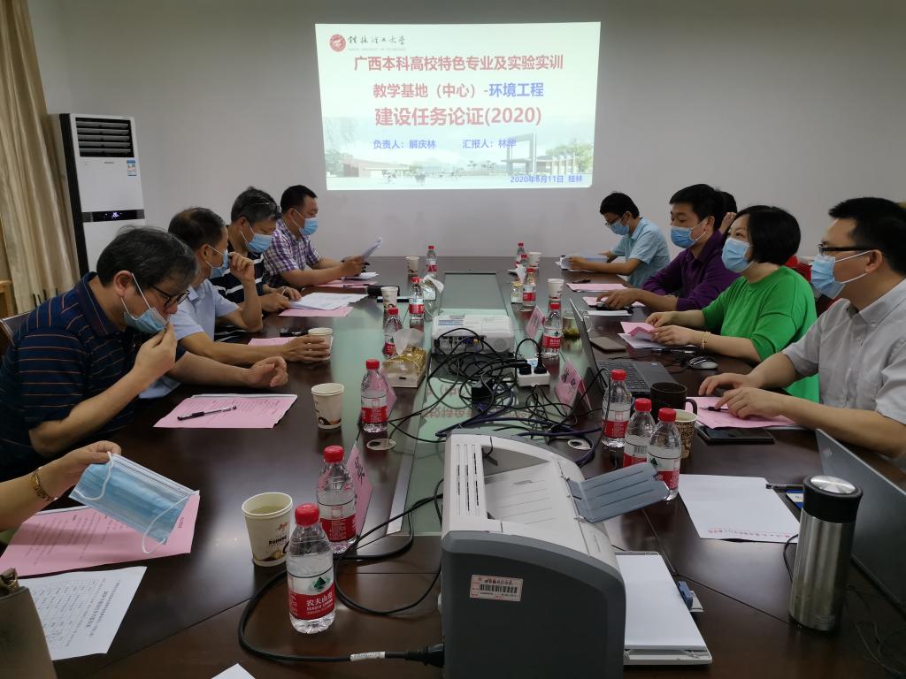 在屏风校区11403会议室组织召开2020年广西本科高校环境工程特色专业及实验实训教学基地建设任务论证会。由来自桂林电子科技大学广西高等学校教学名师郭庆教授、梁英教授,广西师范大学陈孟林教授,寸止挑战
