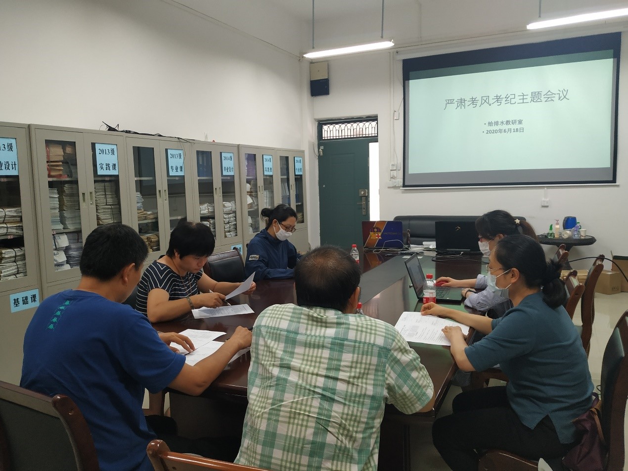 6月18日给排水教研室召开遵守学术诚信、严肃考风考纪主题会议,教研室全体教师参加。会上,全体教师集中学习了《寸止挑战