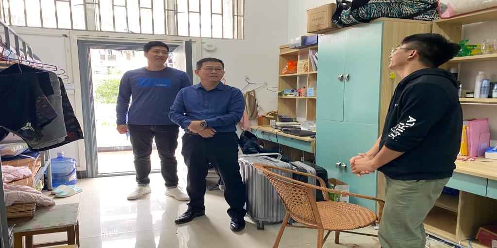党委领导姜子亮、曾鸿鹄、郝文佳、李艳红、林华、黄亮亮、辅导员老师陪同检查了研究生、本科生学生宿舍,对学生宿舍进行了安全隐患实地排查。