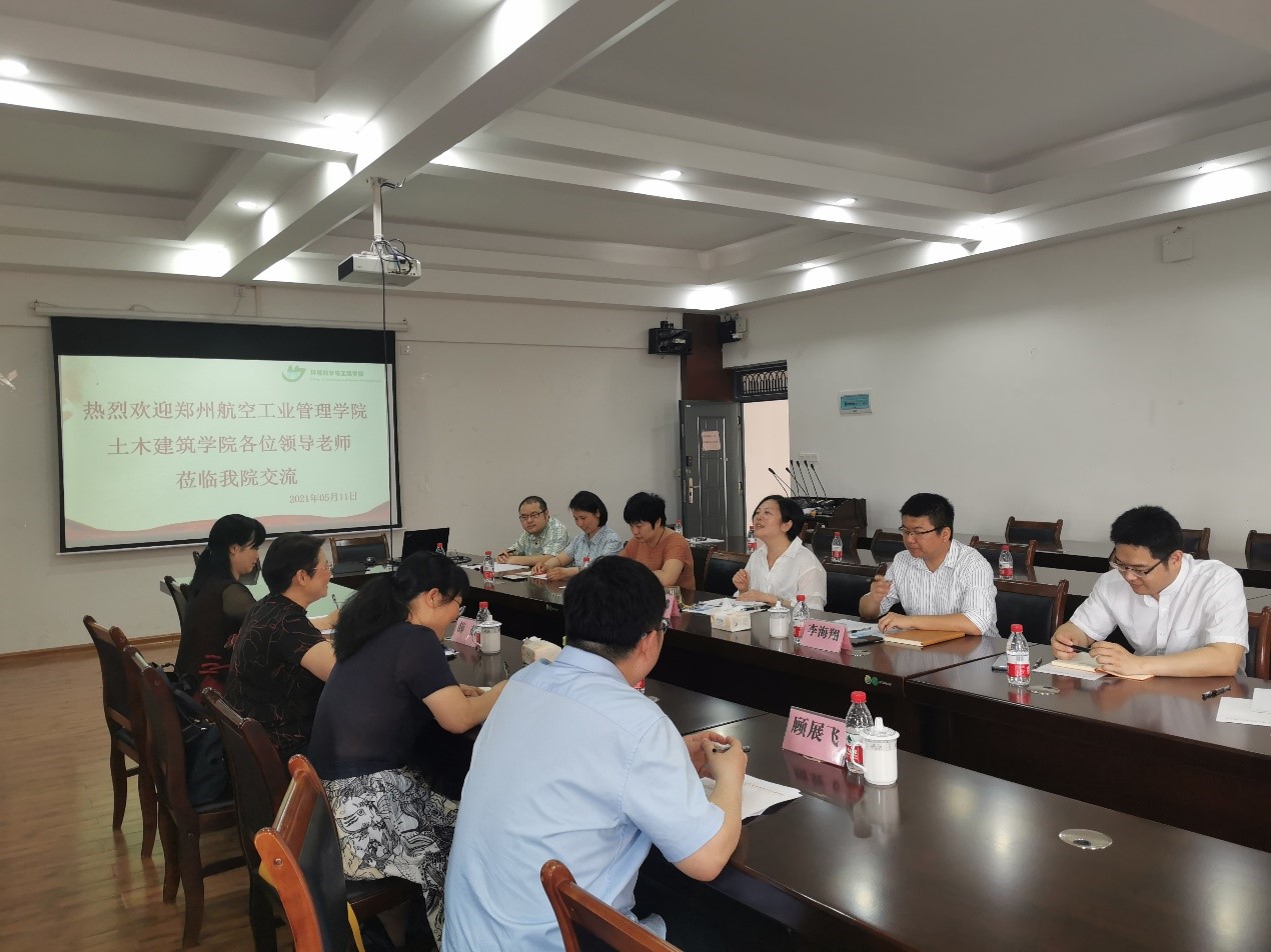 2021年5月11日,郑州航天工业管理学院土木建筑学院在院长薛茹教授带领该校给排水系的专业负责人高军侠教授,系主任李莲秀副教授到寸止挑战 与给水排水教研室的相关老师进行交流。寸止挑战 的相关领导和给水排水教研室的老师出席了交流会。