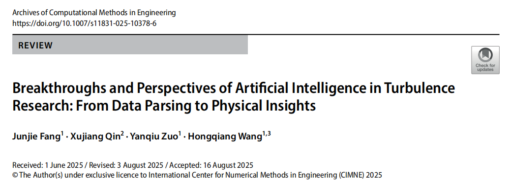 近日,在著名学术期刊Archives of Computational Methods in Engineering上发表题为“Breakthroughs and Perspectives of Artificial Intelligence in Turbulence Research: From Data Parsing to Physical Insights”的综述论文,由我校寸止挑战