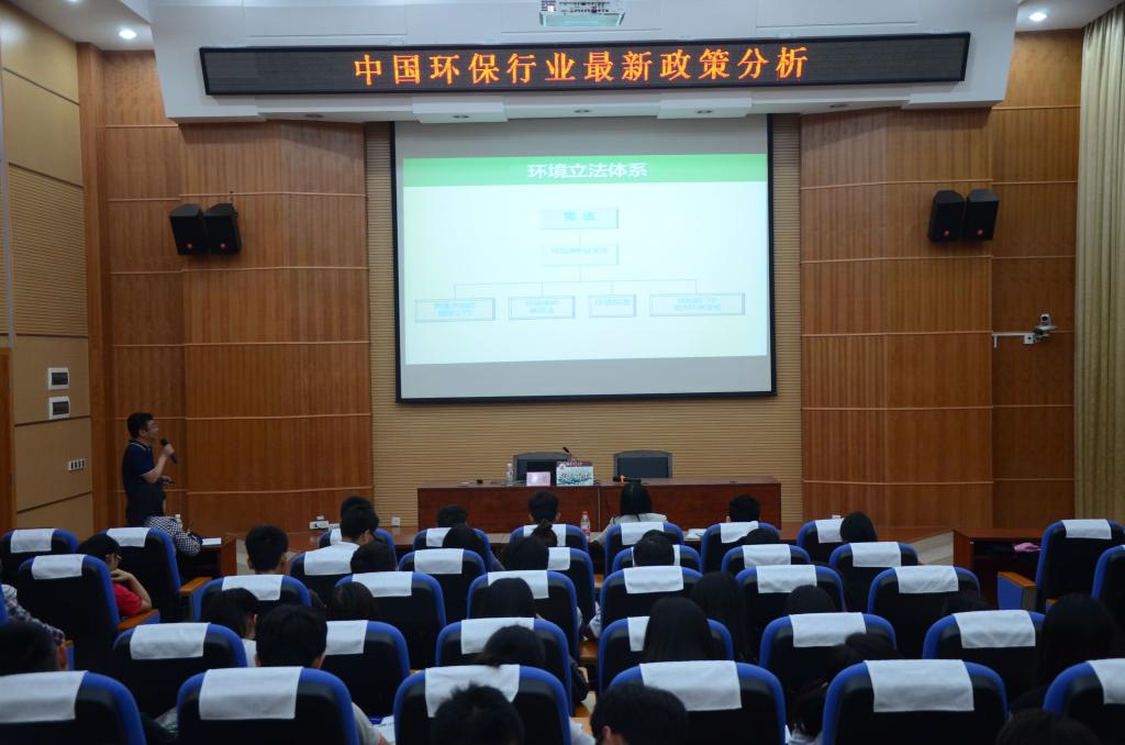 于2016年5月19日下午4:30在雁山校区12栋学术报告厅举行了一场主题为“中国环保行业最新政策分析”的讲座。本次讲座的主讲人为广东省环境监测中心向运荣教授。本次讲座由寸止挑战
