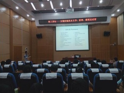 在简单地介绍了阿拉巴马大学水文学科历史、校园风景后。张老师首先叙述了水文循环的多尺度过程:大气降水、植物截留、地表径流、下渗、蒸发等。紧接着,引用地下水的年龄监测、氯化物在地下水的迁移问题、地下水与地表水联合作用的模拟这3个问题,介绍传统方法是如何解决水文地质问题,并借此点明为什么要对传统方法进行改进。张老师指出,之所以要对传统的水文模型进行改进,是因为模型达到一定程度后不能再细化。据张老师透露,在2006年他就提出了“能否用一个同性物理去解决更多不同性的水文问题”,经过10年多的研究,终于得到了领域学者的认可。在介绍改进的对流弥散方程时,张老师借助布朗运动形象地解释了levy运动。最后,张老师将上述理论运用到实际应用中,循序渐进地从小尺度应用至大尺度应用、在裂隙介质的运移预测应用、反应物的运移应用等地下水研究进行介绍。然后,将之拓展到地表产流的研究应用、河流的泥沙运移研究应用中,并强调开发模型的目的就是为了能将其应用起来。报告结束后,张老师还与现场师生进行了互动交流。
