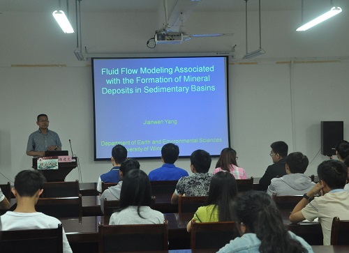 报告会上,杨建文教授介绍了计算机模拟技术研究地质流体与地质过程的方法,为同学们讲解了地下流体迁移及地质过程的演化,并展示了他的科研团队利用计算机模拟技术在地质研究中的最新成果。报告最后,杨教授回答了学生感兴趣的问题,分享了他在国外学习、工作、生活的趣事,鼓励同学们认真学习,多到国外进行交流学习,希望同学们在今后的学习中可以更上一层楼。