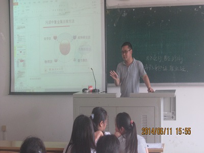 讲座开始,张老师开门见山地指出我国污泥资源化利用率低,直接引出了今天讲座的主题。紧接着,张老师给大家详细的讲解了四大去除污泥中重金属的方法:化学法、物理法、植物修复法、微生物法。并向大家介绍了氧化亚铁硫杆菌沥滤试验的原理。最后,同学们向张老师提出使自己困惑的问题,张老师认真详细的解答了同学们的疑惑。