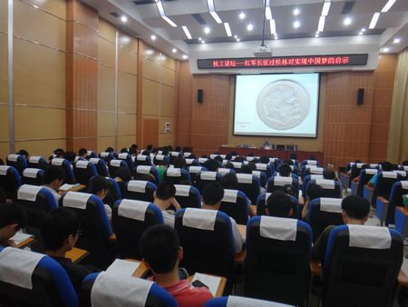周述忠教授通过大量生动详实的图片、资料向在场同学讲述了红军长征过桂林的起因、情况和历史意义,结合自己收藏的红军武器及《红旗日报》等相关文献资料,向师生们进行了精彩的介绍。最后,周教授就红军长征过桂林对实现中国梦的启示进行了阐述,指出所谓中国梦,就是要实现国家富强、民族振兴、人民幸福。只要坚定共产主义信仰,把自己的梦想与国家和民族的大业联系在一起,经过不懈的努力,就一定会创造出精彩的人生、实现中国梦!